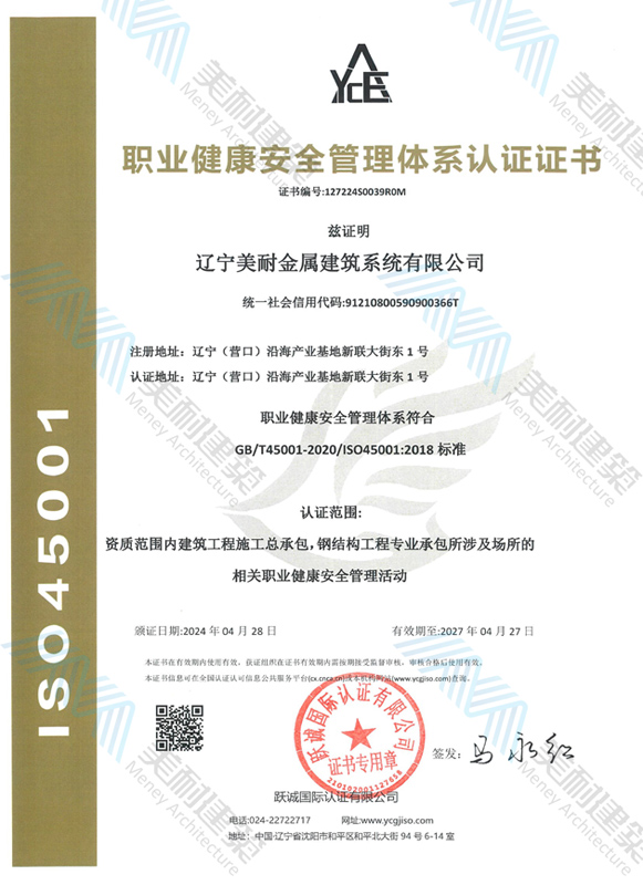 遼寧美耐金屬建筑系統(tǒng)有限公司位于遼寧(營口)沿海產(chǎn)業(yè)基地,專注于預(yù)制金屬建筑系統(tǒng)領(lǐng)域,是一家集工業(yè)建筑設(shè)計(jì)、制作、施工及相關(guān)的技術(shù)咨詢與服務(wù)為一體的綜合性服務(wù)企業(yè)。作為國家鋼結(jié)構(gòu)協(xié)會會員、中國建筑金屬結(jié)構(gòu)協(xié)會會員單位與國家高新技術(shù)企業(yè),美耐建筑集建筑工程施工總承包、鋼結(jié)構(gòu)工程專業(yè)承包等多種資質(zhì)于一身,并擁有22項(xiàng)鋼結(jié)構(gòu)建筑領(lǐng)域?qū)@?項(xiàng)軟件著作權(quán)。